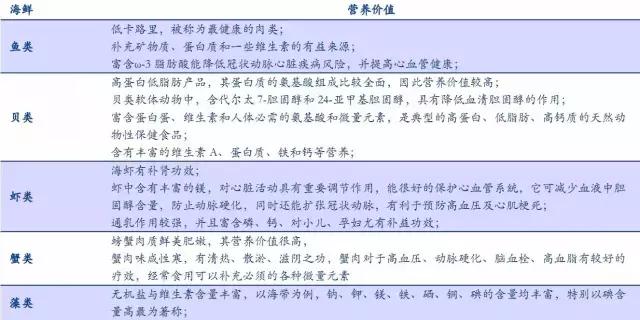 隨著國內(nèi)居民收入水平的不斷提高,中產(chǎn)階級預(yù)計(jì)未來將持續(xù)擴(kuò)容,瑞信全球財(cái)富報(bào)告稱,國內(nèi)中產(chǎn)階級人數(shù)已增長至全球首位,達(dá)1.09億人,占全國人口的11%。以中產(chǎn)階級為代表的中高收入人群,在飲食消費(fèi)上有更高訴求,預(yù)計(jì)這將帶來居民在飲食結(jié)構(gòu)上的持續(xù)改善和升級,海水產(chǎn)將受益,海鮮水產(chǎn)消費(fèi)量將得到提高。