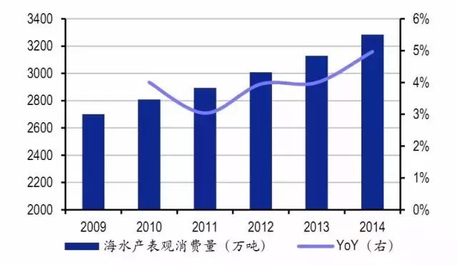 國內(nèi)海水產(chǎn)表觀消費(fèi)量穩(wěn)步上升