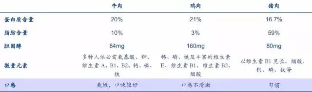 肉類品質(zhì)競爭力比較(每100g含量),牛肉高品質(zhì)和高價(jià)格同消費(fèi)力密切相關(guān)