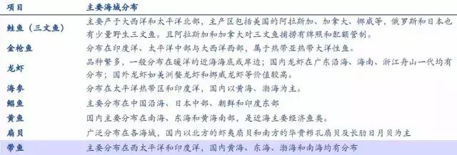 常見海產(chǎn)品的產(chǎn)地分布